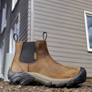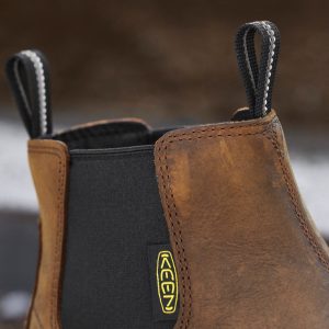 Dependable hiker fit with jobsite-focused features. Durable Chelsea work boot with easy-pull-on leather upper provides essential protection and support.